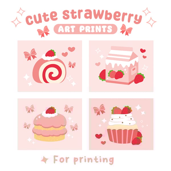 Cute Strawberry Art Prints 🍓