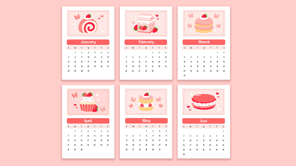 Each month has a different illustration of a strawberry dessert