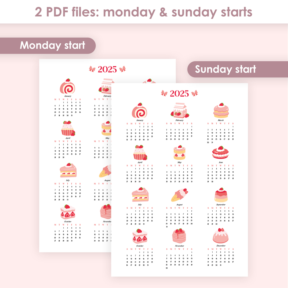 ✿ 2025 cute strawberry calendar of 1 page, A3 format